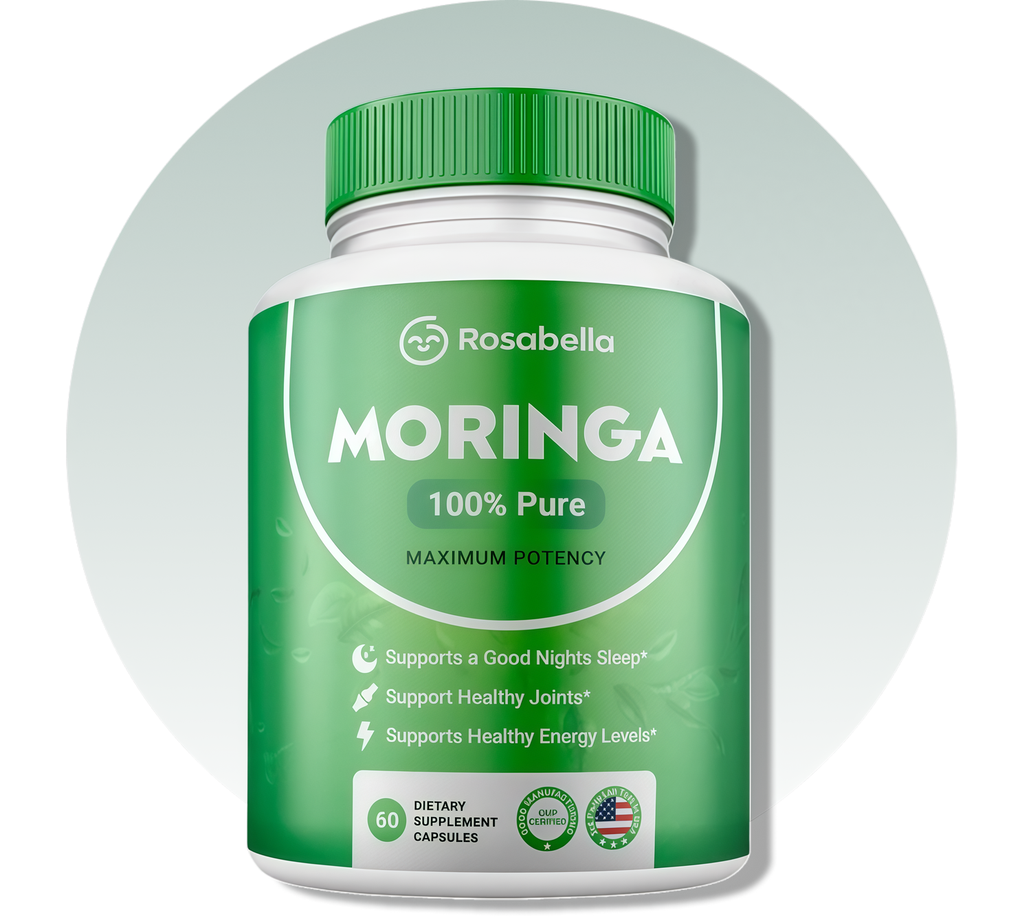 Unlike most supplements with long, complicated labels, Rosabella Moringa has just one ingredient: 100% pure Moringa leaf powder. This single plant delivers a rich spectrum of essential nutrients for whole-body wellness: