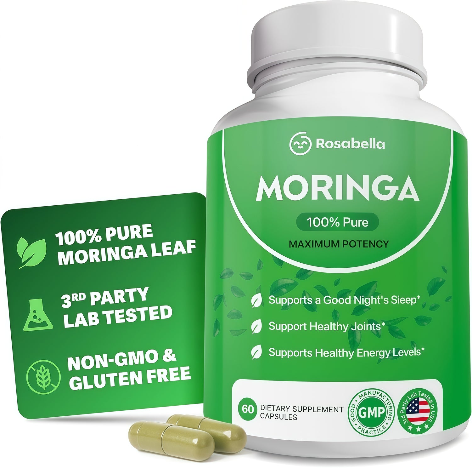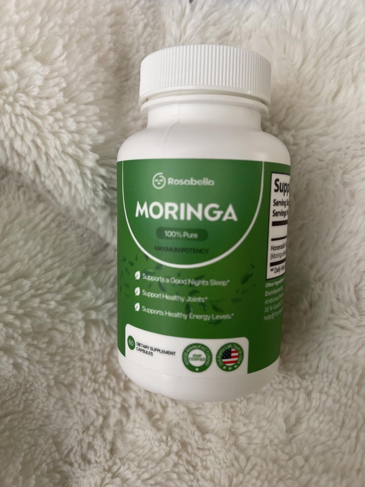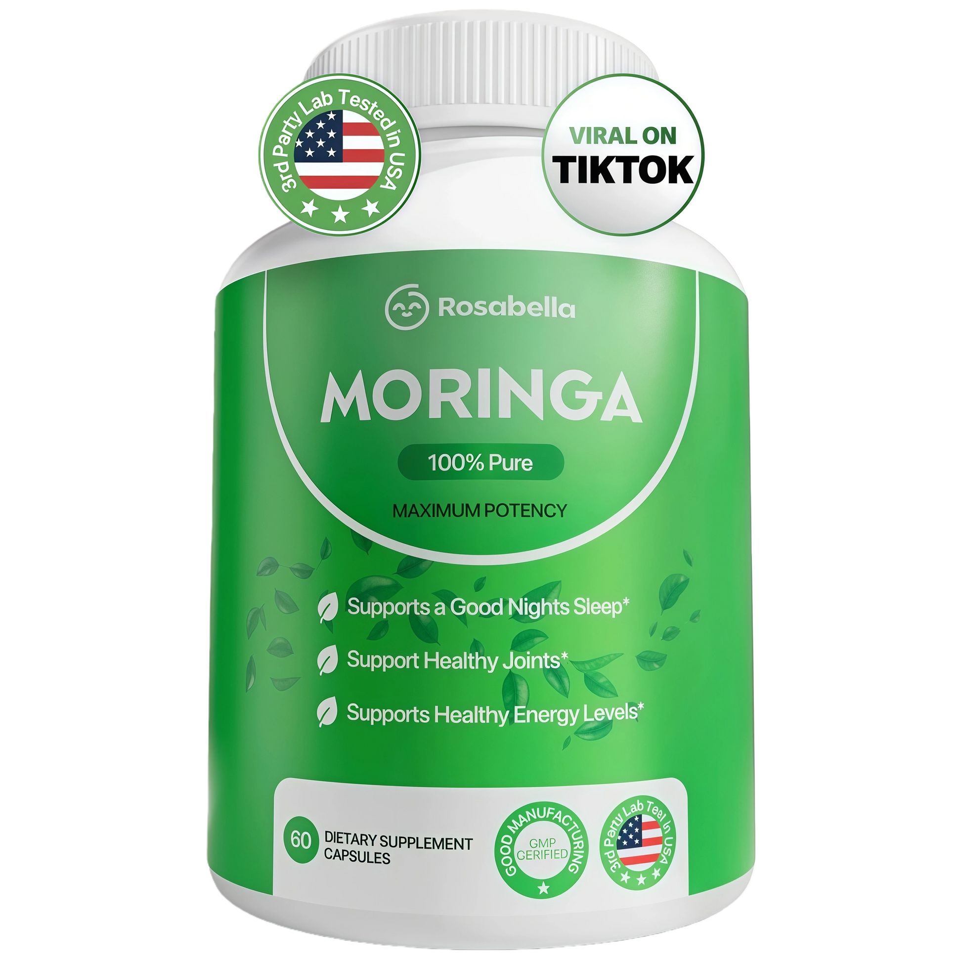 Unlike most supplements with long, complicated labels, Rosabella Moringa has just one ingredient: 100% pure Moringa leaf powder. This single plant delivers a rich spectrum of essential nutrients for whole-body wellness: